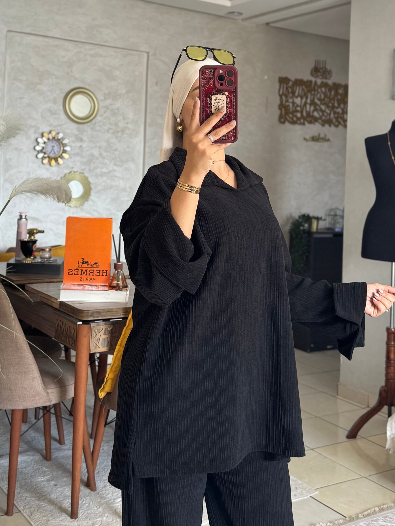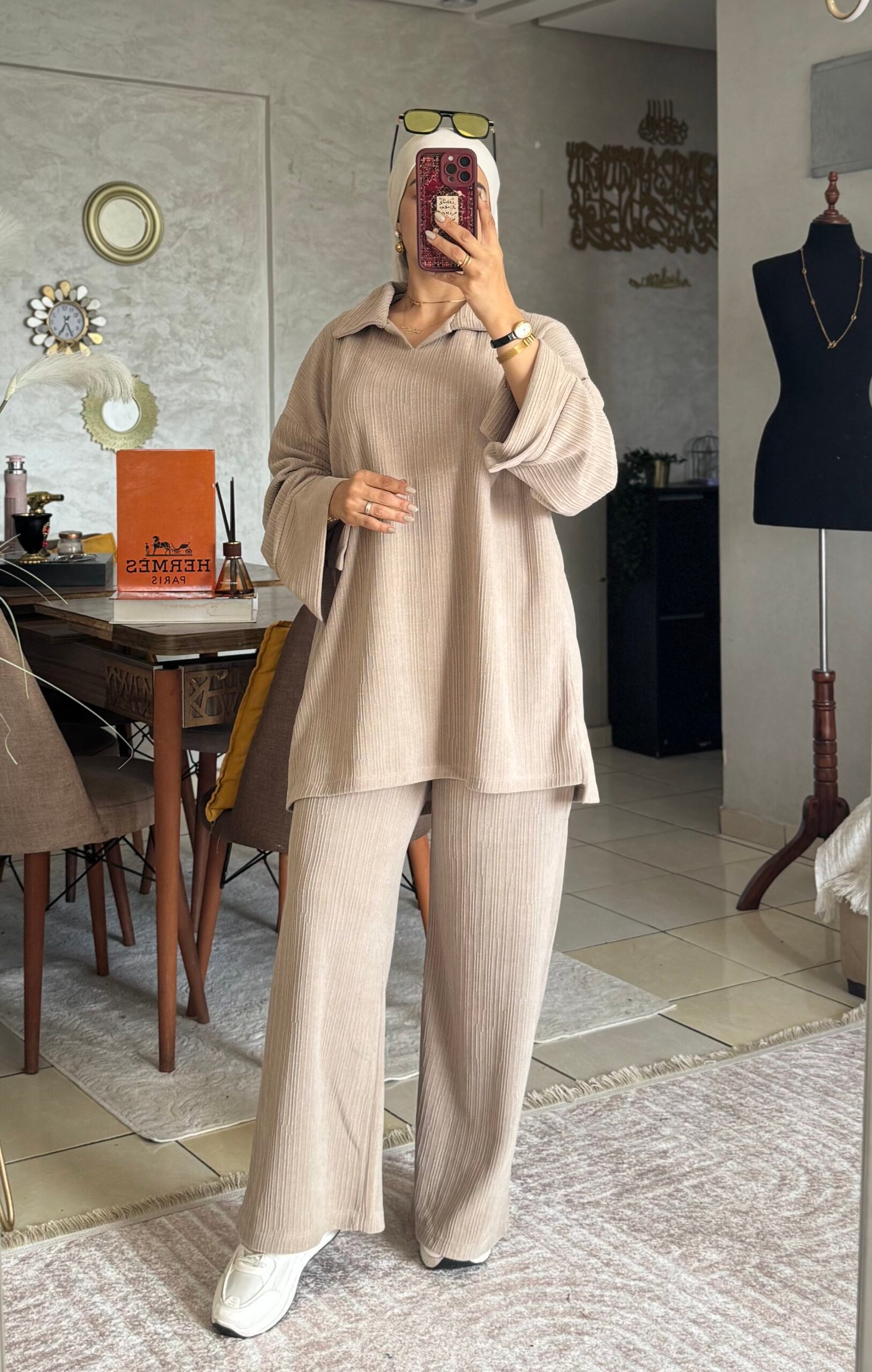Ensemble Oversize Jacquard avec col – ستايل تراند ومريح